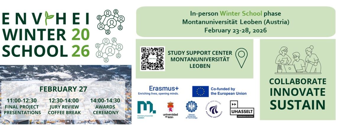 🌍 The ENVIHEI Winter School 2026 will take place at Montanuniversität Leoben, Austria, from 23rd to 28th February, bringing together students, lecturers, and sustainability experts from across Europe for an innovative, hands-on learning experience.